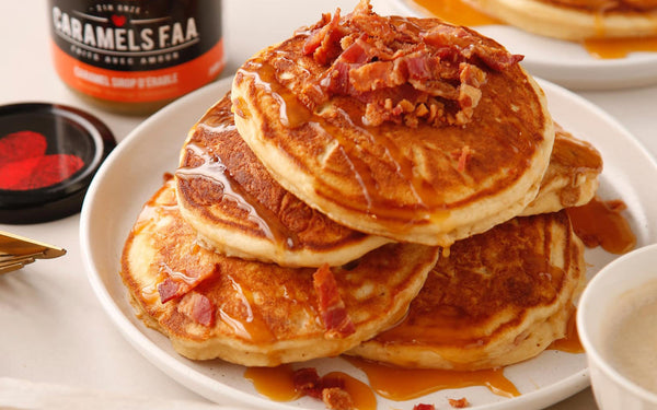 3. Garnir de pacanes, de canneberges caramélisées et ajouter du CARAMELS F.A.A. au sirop d’érable sur le dessus.