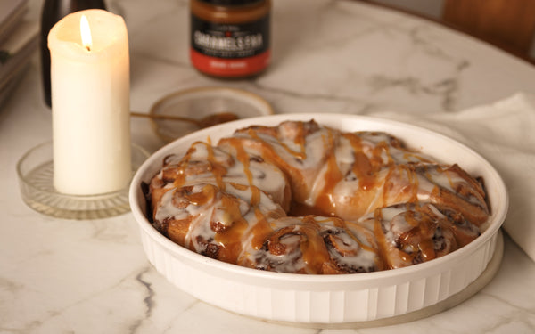 La touche gourmande : À l'aide d'une cuillère, faites couler de généreux filets de caramel en diagonale sur le chocolat encore liquide.