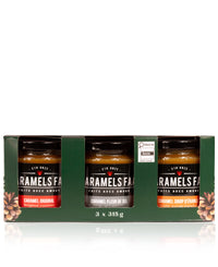 Découvrez notre Trilogie Caramel, un coffret exclusif réunissant trois déclinaisons de notre caramel fondant : l’intensité du caramel original, l’équilibre parfait du caramel fleur de sel et la douceur réconfortante du caramel au sirop d’érable.