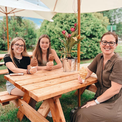 Sweethearts Sonia & Marie-Pier welcome visitors in an illuminated setting where Love is in the spotlight. Among their wide range of gourmet products, don't miss their brand new and delicious soft ice cream with vanilla and caramel, a simply remarkable combination!